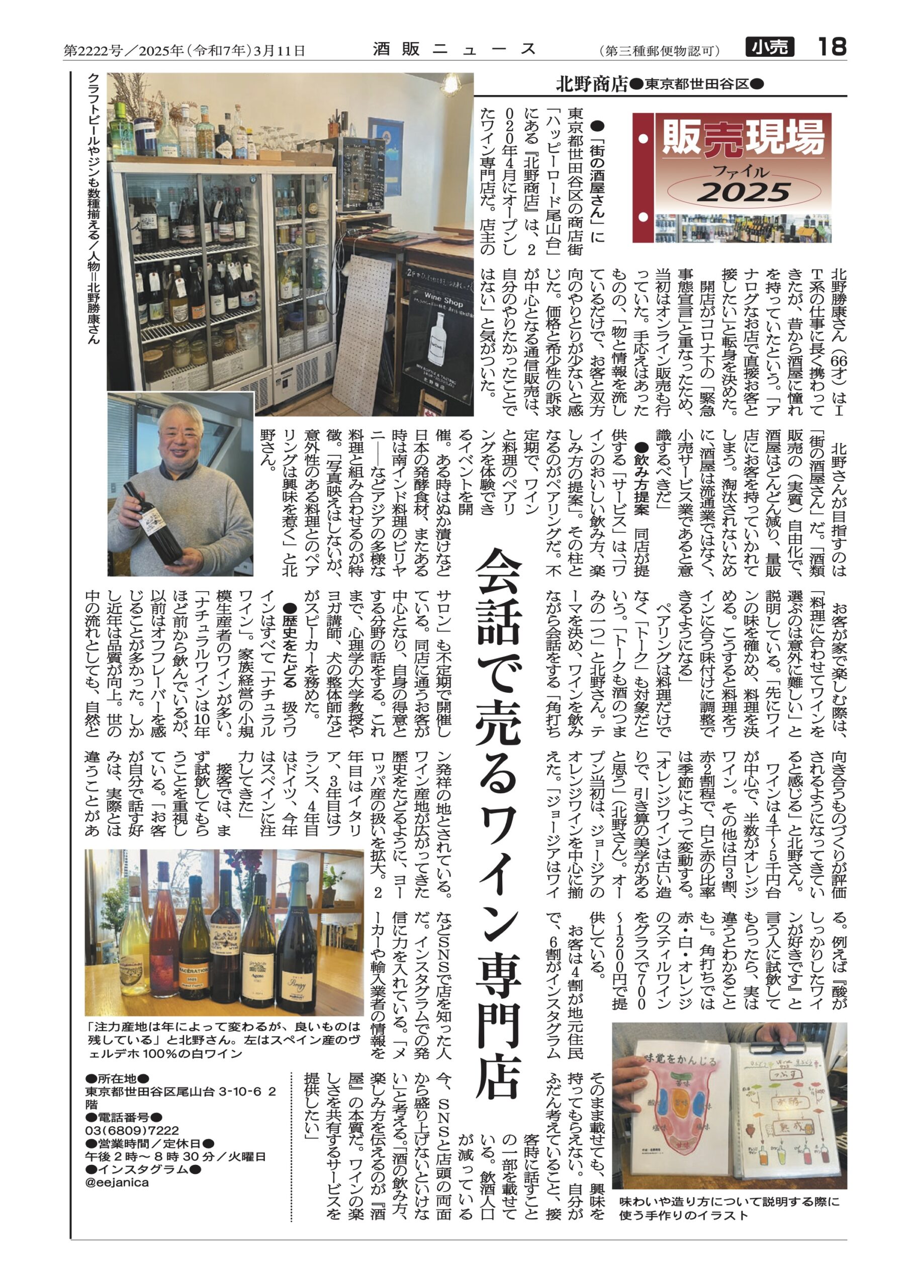 (醸造産業新聞) にて販売現場特集、ナチュラルワイン専門店として取材受け、掲載されました。